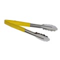 Tongs, 9-1/2", one piece, vinyl-coated, spring steel construction, dishwasher safe, yellow (1 each minimum order)