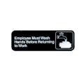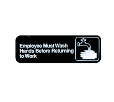 Cash & Carry Sign, 3" x 9", "Employees Must Wash Hands Before Returning to Work", white on black, pressure sensitive adhesive backing, dishwasher safe, plastic (1 each minimum order)