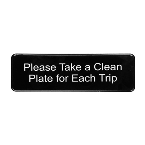 Sign, 9" x 3", "Please Take A Clean Plate", self adhesive backing, plastic, black (1 each minimum order)