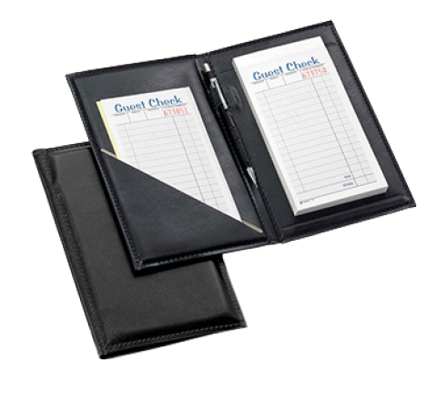 Order Holder, 5-1/4" x 8-1/2", with pen loop, two fold, 14 point vinyl with sewn border (pen & pad not included), black, Made in USA (1 each minimum order)