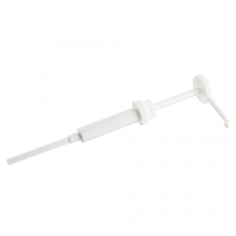 Economy Pump, 13-22/25"W x 4-3/4"D x 1-1/5", includes 9+ dip tube, 38mm snap top, plastic, white