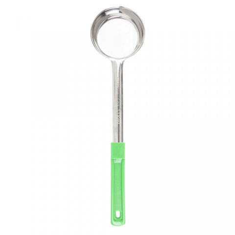 Spoonout, 4 oz., one-piece, solid, dishwasher safe, green handle, stainless steel (1 each minimum order)