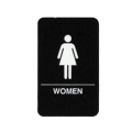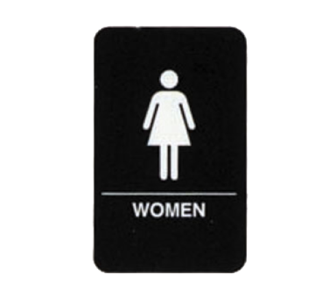 Cash & Carry Sign, 6" x 9", "Women" Restroom, pressure sensitive adhesive backing, Braille/tactile (raised symbols & text), white on black, plastic, ADA compliant (1 each minimum order)