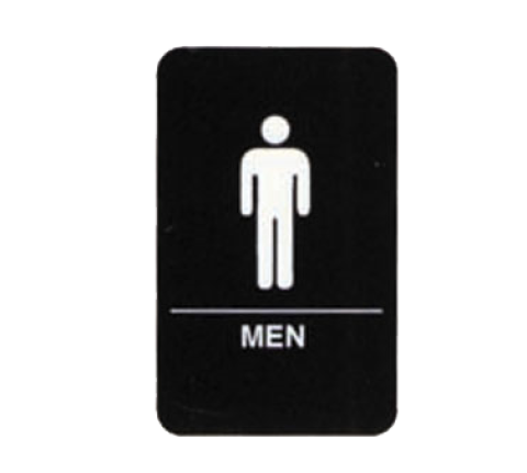 Cash & Carry Sign, 6" x 9", "Men" Restroom, pressure sensitive adhesive backing, Braille/tactile (raised symbols & text), white on black, plastic, ADA compliant (1 each minimum order)