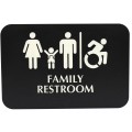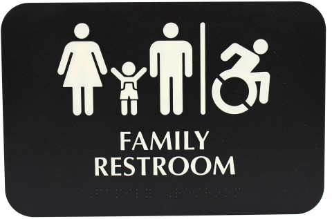 Cash & Carry Sign, 6" x 9", Family "Restroom" with handicap accessible symbol, pressure sensitive adhesive backing, Braille/tactile (raised symbols & text), white on blue, plastic, ADA compliant (1 each minimum order)
