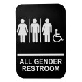 Cash & Carry Sign, 6" x 9", "All Gender Restroom" handicap accessible symbol, pressure sensitive adhesive backing, Braille/tactile (raised symbols & text), white on black, plastic, ADA compliant (1 each minimum order)