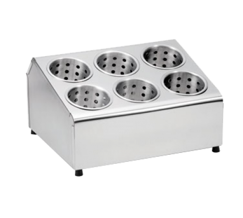 Flatware Cylinder Holder, 15" x 12-1/4" x 7-1/2", two-tier, (6) holes, dishwasher safe, stainless steel (cylinders not included) (1 each minimum order)