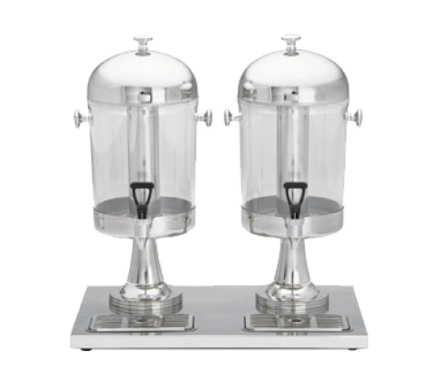 Cash & Carry Beverage Dispenser, (2) 2 gallon reservoirs, 22" x 13-3/4" x 21"H, 5-1/2" faucet clearance, dishwasher safe, stainless steel/polycarbonate, stainless steel center core holds ice for chilling (1 each minimum order)