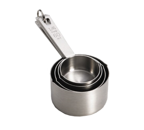 Measuring Cup, 4 piece, 1/4, 1/3, 1/2, & 1 cup, dishwasher safe, heavy weight stainless steel (1 set minimum order)