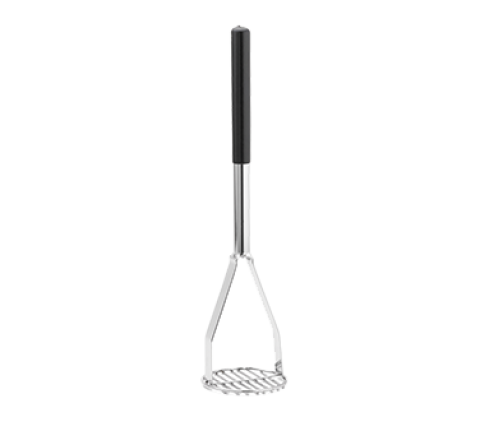 Potato Masher, 19-3/4" O.A., 4-1/2" dia. round face, dishwasher safe, chrome plated, black texture handle (1 each minimum order)