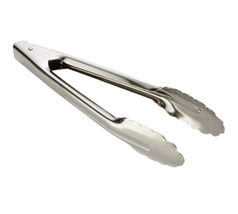 Utility Tongs, 9-1/2", standard weight .7mm, dishwasher safe, stainless steel (must be purchased in multiples of 12 each)
