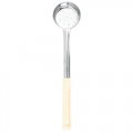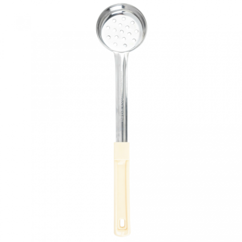 Spoonout, 3 oz., one-piece, perforated, dishwasher safe, beige handle, stainless steel (1 each minimum order)