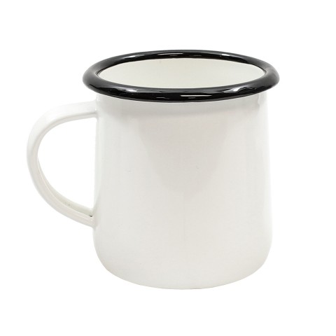 Enamelware Collection™ Mug, 12 oz., dishwasher safe, vitreous porcelain enamel coated steel, creamy white with black rim (1 each minimum order)
