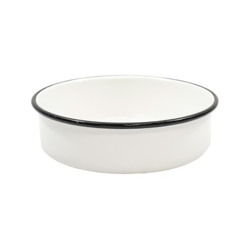Enamelware Collection™ Serving Bowl, 2-1/4" qt., 8-1/2" x 8-1/2" x 2-3/4", round, dishwasher safe, vitreous porcelain enamel coated steel, white with quartz black rim (1 each minimum order)