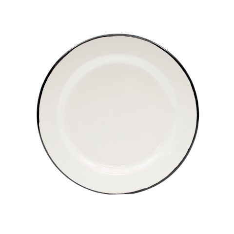 Enamelware Collection™ Plate, 8" dia., round, dishwasher safe, vitreous porcelain enamel coated steel, creamy white with black rim (1 each minimum order)