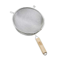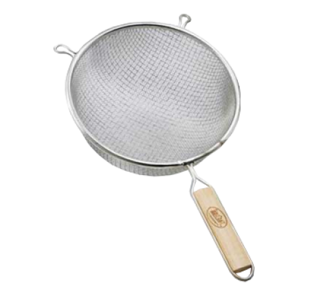 Strainer, 8" dia., double fine mesh, hand wash only, tinned, wooden handle (1 each minimum order)