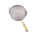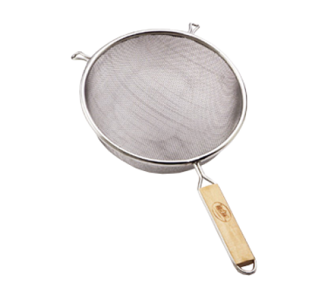 Strainer, 10-1/4" dia., double fine mesh, hand wash only, tinned, wooden handle (1 each minimum order)