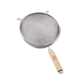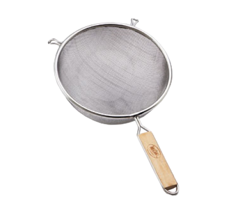 Strainer, 8" dia., single medium mesh, hand wash only, tinned, wooden handle (1 each minimum order)