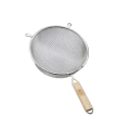 Strainer, 8" dia., double medium mesh, hand wash only, tinned, wooden handle (1 each minimum order)