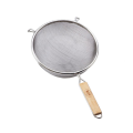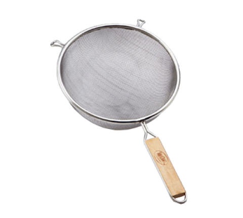 Strainer, 10-1/4" dia., double medium mesh, hand wash only, tinned, wooden handle (1 each minimum order)