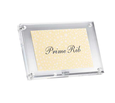 Magnetic Card/Sign Holder, 4" x 1-1/4" x 2-1/2", rectangular, dishwasher safe, acrylic (1 each minimum order)