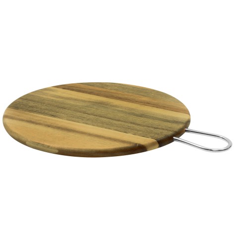 Cash & Carry Acacia Display Board, 14" dia. x 1/2", round, with 4" metal handle, hand wash only, wood (1 each minimum order)