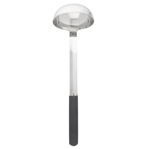 Antimicrobial Ladle, 6 oz., 4" x 3-1/2" x 13-1/4", dishwasher safe, black handle, 18-8 stainless steel (1 each minimum order)