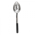 Antimicrobial Serving Spoon, 8 oz., 14-1/2" x 4" x 2", slotted, dishwasher safe, black handle, 18-8 stainless steel (1 each minimum order)