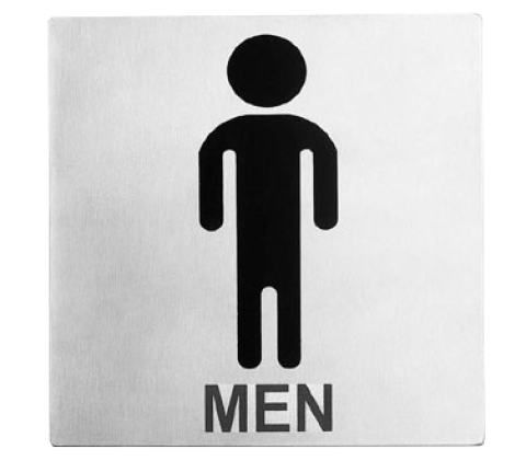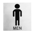 Cash & Carry Sign, 5" x 5", "Men Restroom", pressure sensitive adhesive backing, stainless steel (1 each minimum order)
