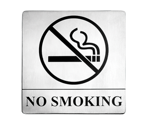 Cash & Carry Sign, 5" x 5", "No Smoking", pressure sensitive adhesive backing, stainless steel (1 each minimum order)