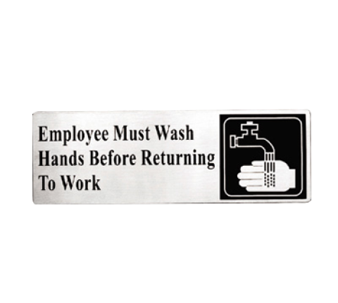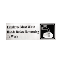 Cash & Carry Sign, 3" x 9", "Employees Must Wash Hands Before Returning To Work", pressure sensitive adhesive backing, dishwasher safe, stainless steel (1 each minimum order)