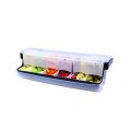 Cash & Carry First in First Out Garnish Station, 20" x 6-1/4" x 6-1/2", includes: (6) 1-1/4 pt. white polypropylene inserts and (3) bin dividers, dishwasher safe, ABS plastic, black and clear, NSF (Patented) (1 each minimum order)