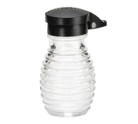 Beehive Salt/Pepper Shaker, 2 oz., 2-1/16" x 3-15/16"H, dishwasher safe, moisture proof ABS black hinged flip top, glass, clear (must be purchased in multiples of 24 each)