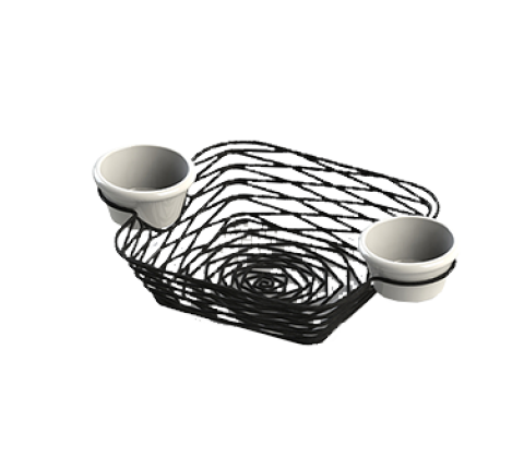 Artisan Collection™ Basket, 11" x 7-1/2" x 2", square, with (2) integrated ramekin holders (ramekins not included), hand wash only, black powder coated metal (1 each minimum order)