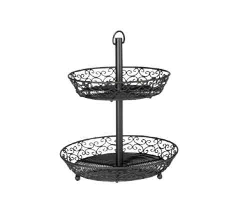 Mediterranean Collection™ Basket, two-tiered, 9" & 10-1/2" baskets, 12-1/4" H, with legs, hand wash only, black powder coated metal (1 each minimum order)