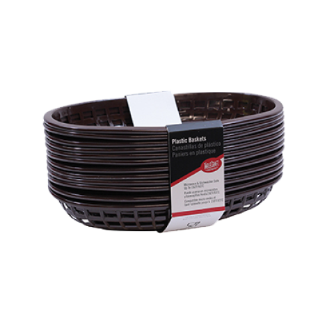 Cash & Carry Classic Baskets, 9-1/4" x 6" x 1-3/4", oval, heat resistant up to 150°F/65°C, heat lamp/dishwasher/microwave safe, plastic, brown, Made in USA (display merchandise pack, 12 per pack) (must be purchased in multiples of 3 packs)
