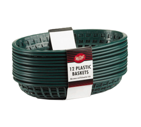Cash & Carry Classic Baskets, 9-1/4" x 6" x 1-3/4", oval, heat resistant up to 150°F/65°C, heat lamp/dishwasher/microwave safe, plastic, forest green, Made in USA (display merchandise pack, 12 per pack) (must be purchased in multiples of 3 packs)