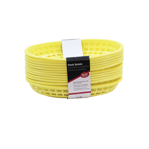Cash & Carry Classic Baskets, 9-1/4" x 6" x 1-3/4", oval, heat resistant up to 150°F/65°C, heat lamp/dishwasher/microwave safe, plastic, yellow, Made in USA (display merchandise pack, 12 per pack) (must be purchased in multiples of 3 packs)