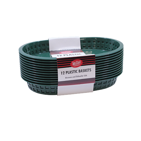 Cash & Carry Chicago Baskets, 10-1/2" x 7" x 1-1/2", oval, heat resistant up to 150°F/65°C, heatlamp/dishwasher/microwave safe, plastic, forest green, Made in USA (display merchandise pack, 12 per pack) (must be purchased in multiples of 3 packs)