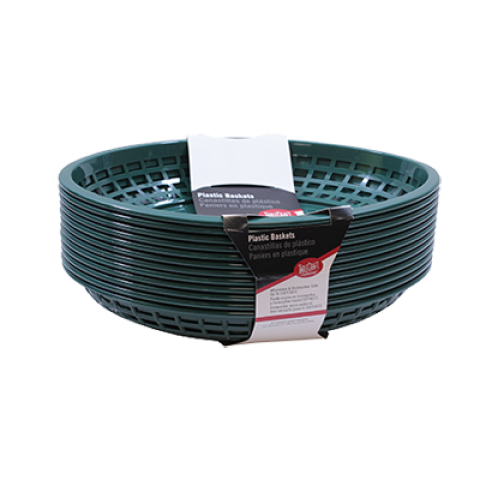 Cash & Carry Baskets, 11-3/4" x 9" x 1-3/4", jumbo, oval, dishwasher safe, plastic, forest green, Made in USA (display merchandise pack, 12 per pack) (must be purchased in multiples of 3 packs)