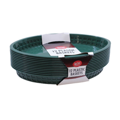 Cash & Carry Texas Baskets, 12-3/4" x 9-1/2" x 1-1/2", oval, heat resistant up to 150°F/65°C, heatlamp/dishwasher/microwave safe, polypropylene, forest green, Made in USA (display merchandise pack, 12 per pack) (must be purchased in multiples of 3 packs)