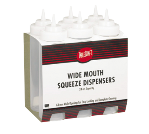 Cash & Carry WideMouth™ Squeeze Bottle, 12 oz., 53mm opening, dishwasher safe, clear, NSF, Made in USA (display merchandise pack, 6 per pack) (must be purchased in multiples of 12 packs)
