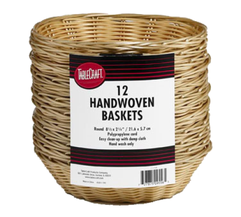 Cash & Carry Baskets, 8-1/2" dia. x 2-1/4", round, dishwasher safe, hand-woven, polypropylene, natural (12 per pack) (1 pack minimum order)
