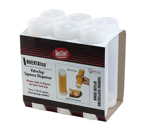 Cash & Carry Invertatop™ Squeeze Bottle, 24 oz., 63mm opening, dishwasher safe, clear, NSF (display merchandise pack, 6 per pack) (must be purchased in multiples of 8 packs)