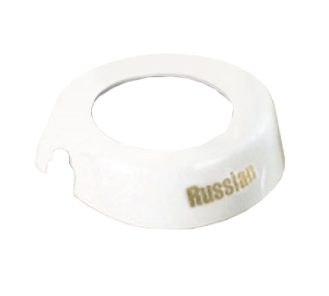 Dispenser ID Collar, "Russian", fits model numbers 483 & 484, white plastic collar, beige print, Made in USA (1 each minimum order)