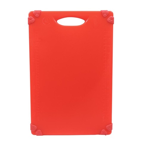 Cash & Carry Grippy Cutting Board, 12" x 18", integrated handle, anti-slip grips, integrated measurements (cm/in), heat, chemical & warp resistant, dishwasher safe, red, meets HACCP guidelines, NSF (1 each minimum order)