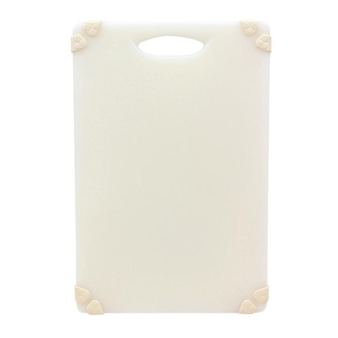 Cash & Carry Grippy Cutting Board, 12" x 18" x 1/2", integrated handle, anti-slip grips, integrated measurements (cm/in), heat, chemical & warp resistant, dishwasher safe, white, meets HACCP guidelines, NSF (1 each minimum order)