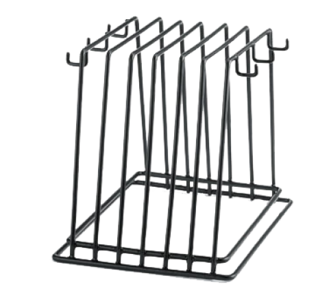 Cutting Board Storage Rack, 12-1/4" x 9-1/2" x 10", (6) slots, (6) hooks, dishwasher safe, black vinyl-coated (1 each minimum order)
