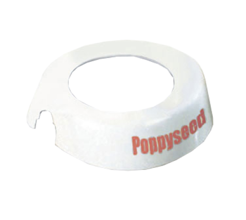 Dispenser ID Collar, "Poppyseed", fits model numbers 483 & 484, white dishwasher safe, plastic collar, maroon print, Made in USA (1 each minimum order)