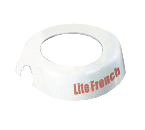 Dispenser ID Collar, "Lite French", fits model numbers 483 & 4848, white dishwasher safe, plastic collar, maroon print, Made in USA (1 each minimum order)